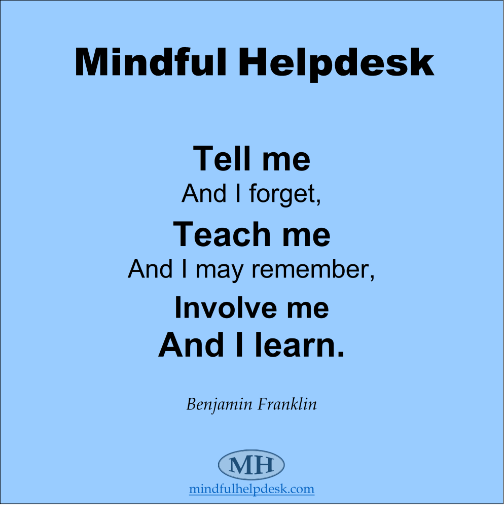 QUOTETell Me, Teach Me, Involve Me by Mindful HelpdeskJanuary 24, 2021 Leave a Comment on Tell Me, Teach Me, Involve Me Share this: Share on X (Opens in new window) X Share on Facebook (Opens in new window) Facebook Like Loading...